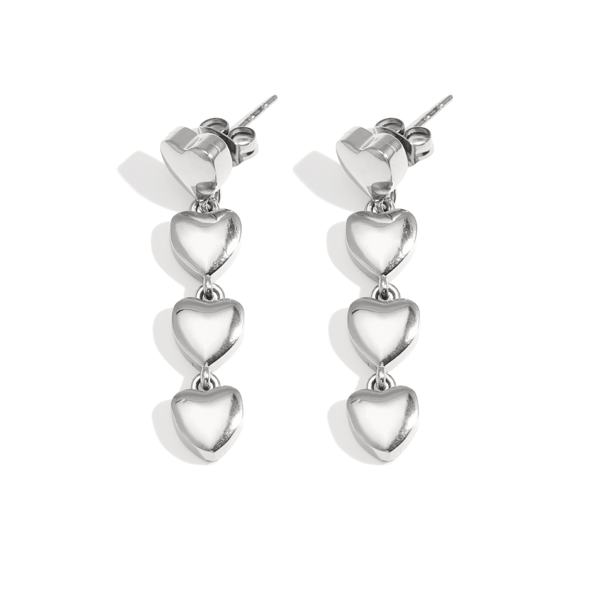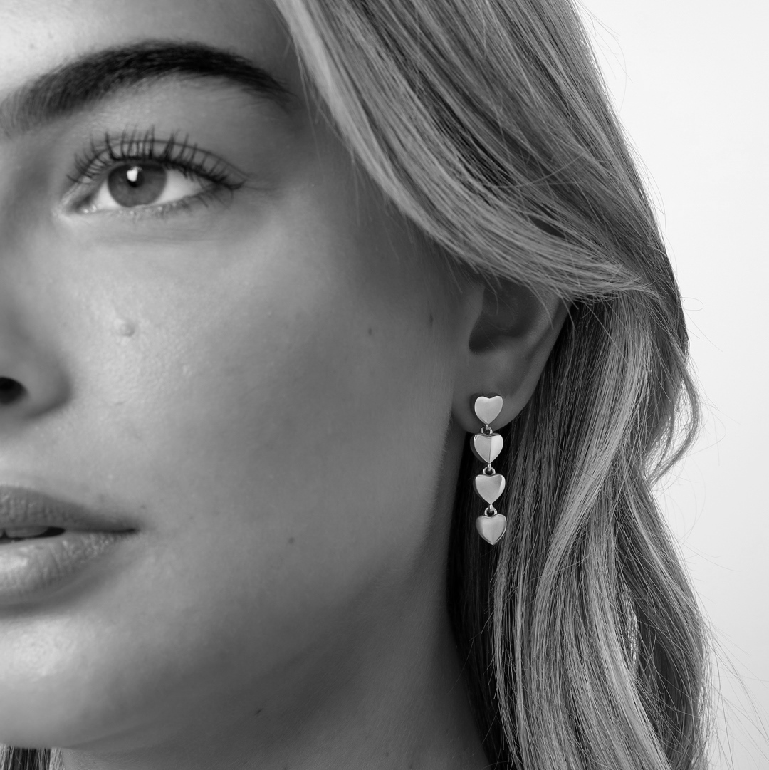 Deze nieuwe zilveren oorbellen met 4 hangende hartjes zijn precies waar je naar op zoek bent! Cute, speels en eindeloos te combineren.